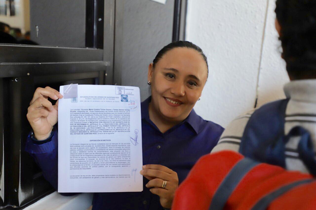 Chetumal.- La diputada local Cristina Torres Gómez ingresó una iniciativa de reforma de ley para incluir perspectiva de género, de respeto por los derechos humanos y los pueblos indígenas, en los contenidos educativos, así como en la preparación de docentes.