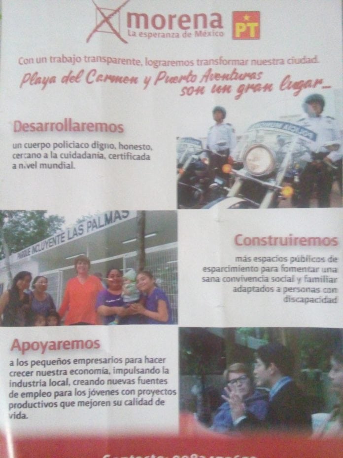 Por otro lado dice: “Mejoraremos la economía de la zona con proyectos para mujeres que deseen emprender un negocio de manera formal“, cuando eso ya existe mediante múltiples programas como “Crédito a la palabra para mujeres emprendedoras“, así como otros programas para productores primarios, hombres y jóvenes; el impulso de la marca “Hecho en Playa del Carmen” y “Hecho en Puerto Aventuras”, entre otras acciones más.