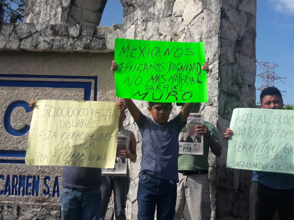 Playa del Carmen.- Marciano “Chano” Toledo Sánchez y un grupo de 40 personas protestaron afuera de la minera Calizas Industriales del Carmen (Calica) en contra de la exportación de material pétreo, que aseguran se usa para construir el muro fronterizo, y en contra del presidente de los Estados Unidos, Donald Trump.
