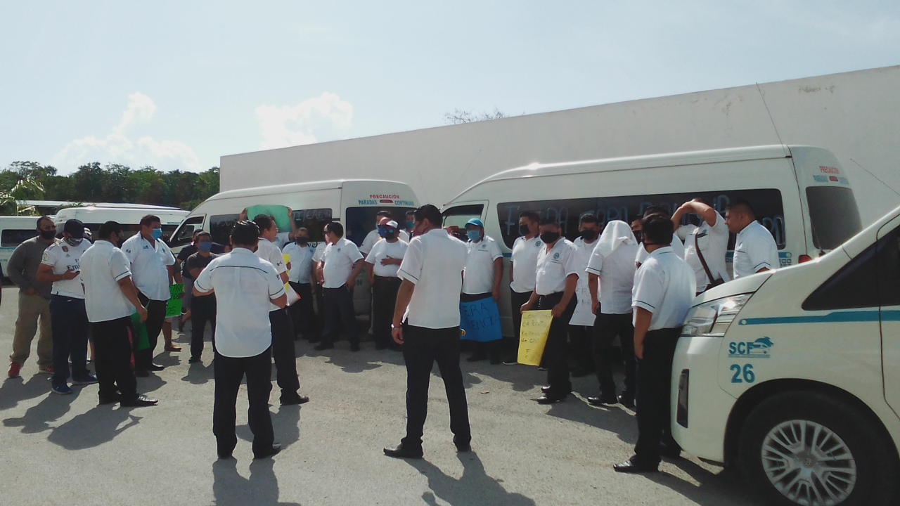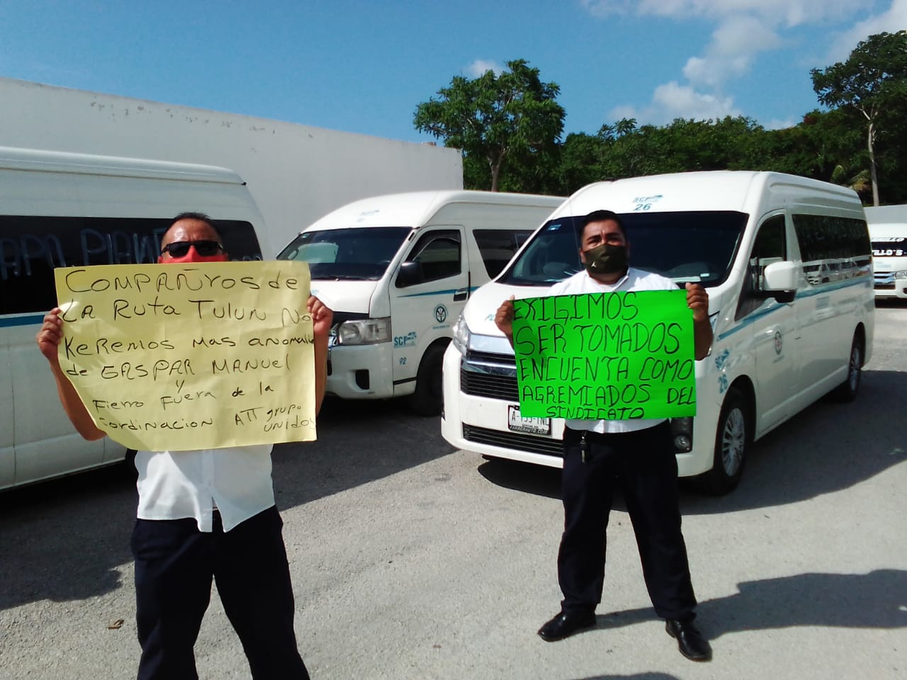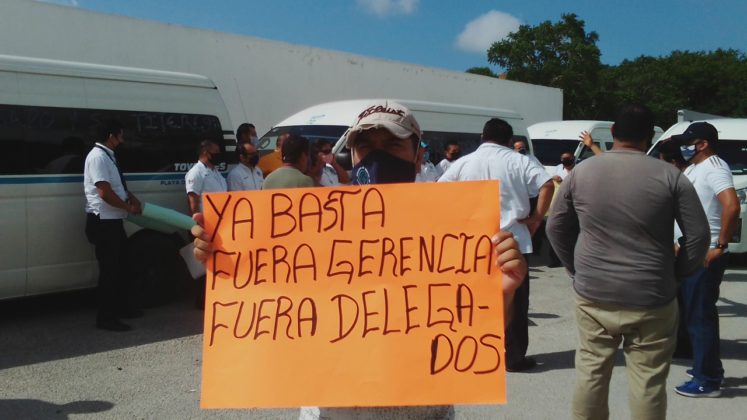 Esta mañana cerca de 230 operadores de servicio foraneo realizaron una protesta pacífica en Playa del Carmen, exigiendo la destitución del gerente conocido como Gaspar Manuel con pancartas.