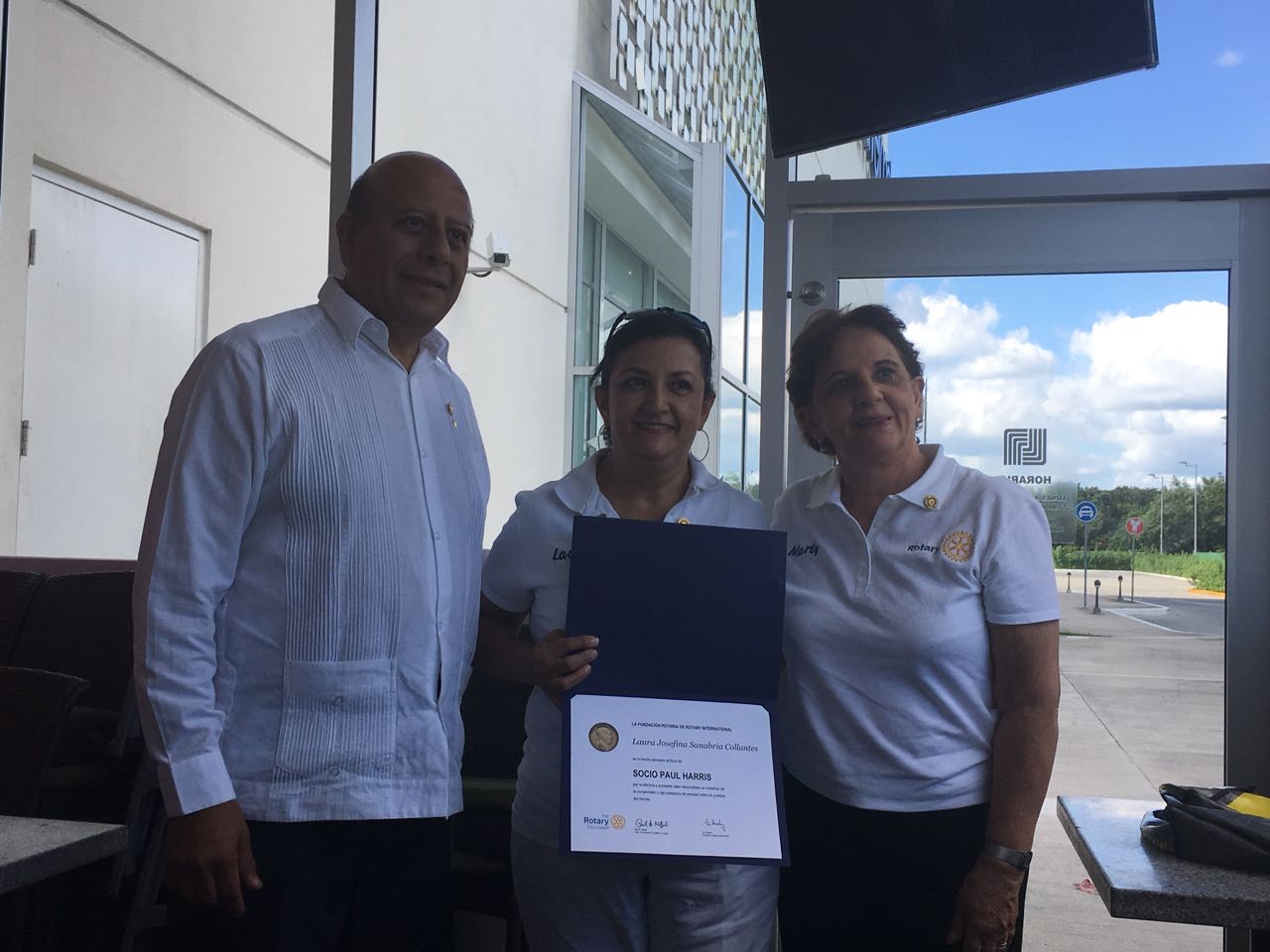 Marly Lipe, presidenta del Club Rotario Riviera Maya, agradeció la visita del gobernador y destacó que su presencia motiva a los socios para continuar realizando acciones de beneficio para la gente que más lo requiere.