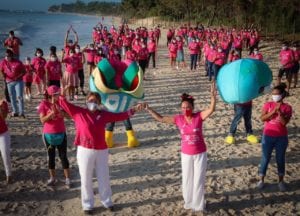 “La detección temprana con vistas a superar el pronóstico y la supervivencia sigue siendo la piedra angular del control del cáncer de mama. Ese es el objetivo de los que estamos aquí: concientizar acerca de la detección temprana. ¡Vamos a cuidarnos!”, enfatizó la Presidenta municipal, después de realizar el Lazo Solidario en la playa 88, una de las tres que cuenta con certificación Blue Flag.