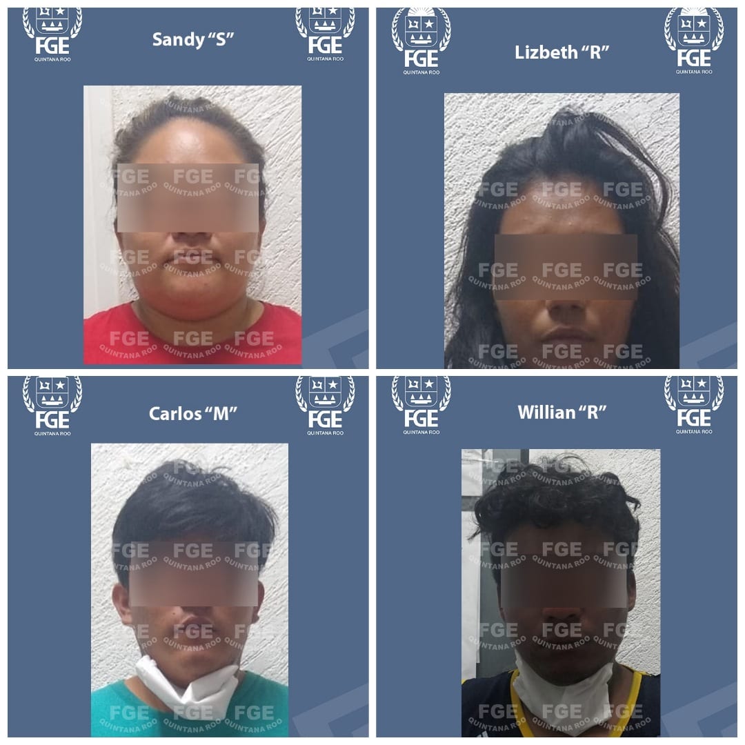Solidaridad. -La Fiscalía General del Estado de Quintana Roo, informa que Fiscales Especializados en Investigación de Robos, lograron que un juez de control vinculara a proceso a Carlos “M”, Willian “R”, Sandy “S” y Lizbeth “R” por el delito de robo con violencia, relacionados en la carpeta administrativa 215/2020.