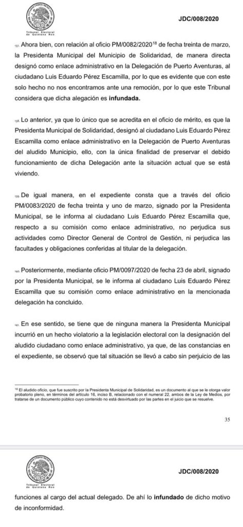 Fallo del Tribunal Electoral de Quintana Roo (TEQROO)