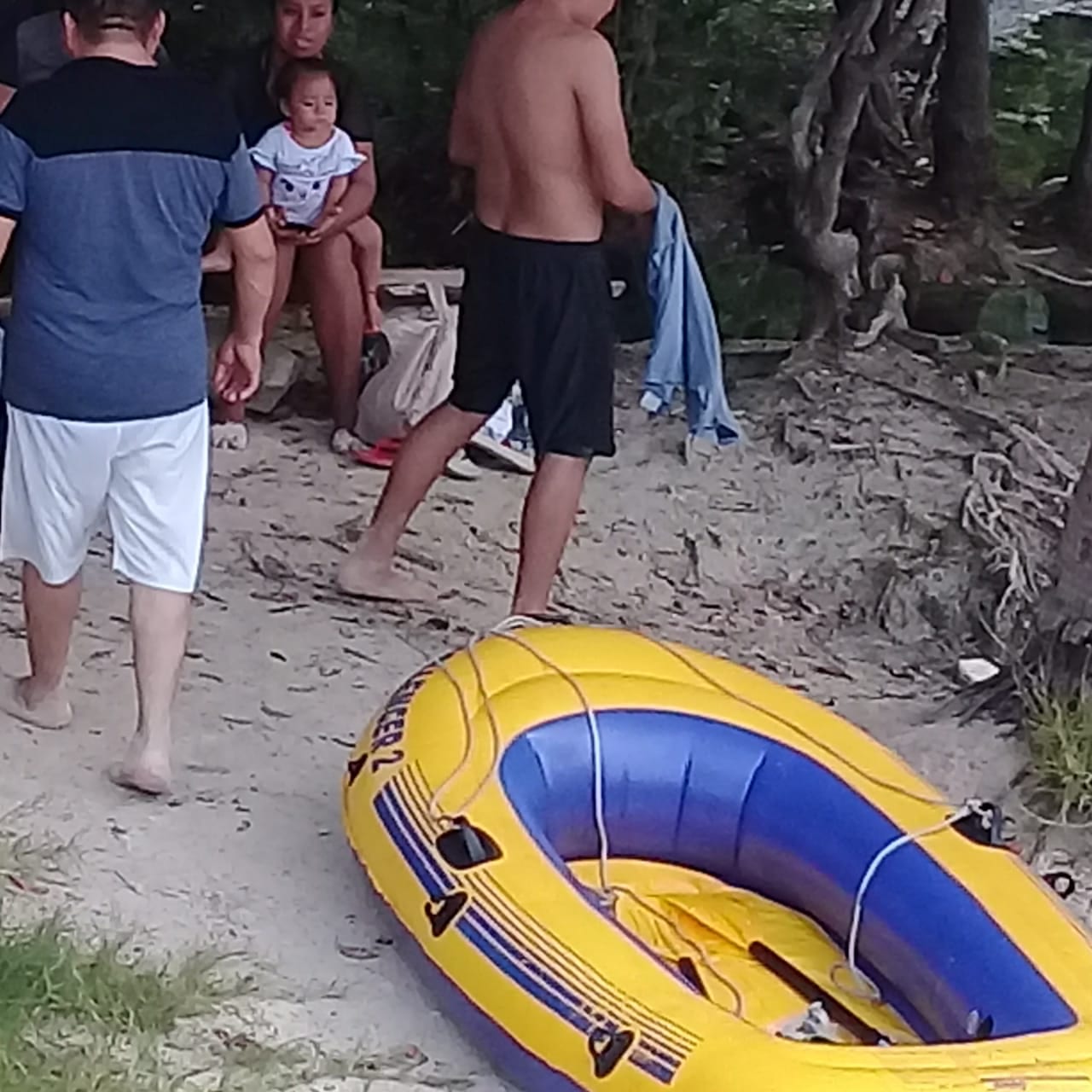Y es que, la pequeña balsa de color amarillo con azul, no contaba con remos adecuados, lo que les dificultó volver a la costa cuando por efecto del oleaje se alejaron.