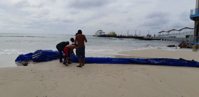 Playa del Carmen.- Debido al paso de Michael por el norte de Quintana Roo, las barreras antisargazo fueron retiradas hoy en Playa del Carmen.