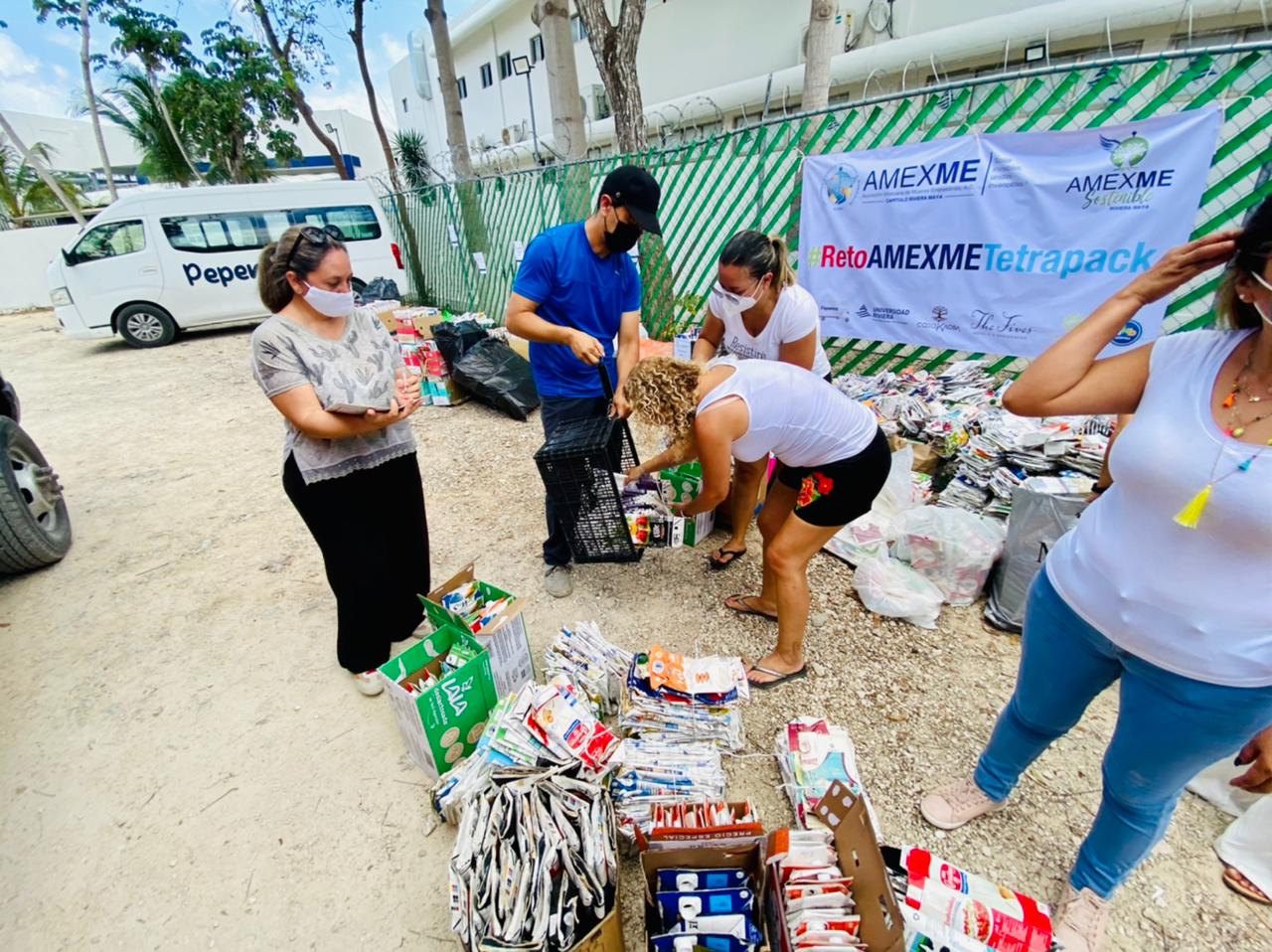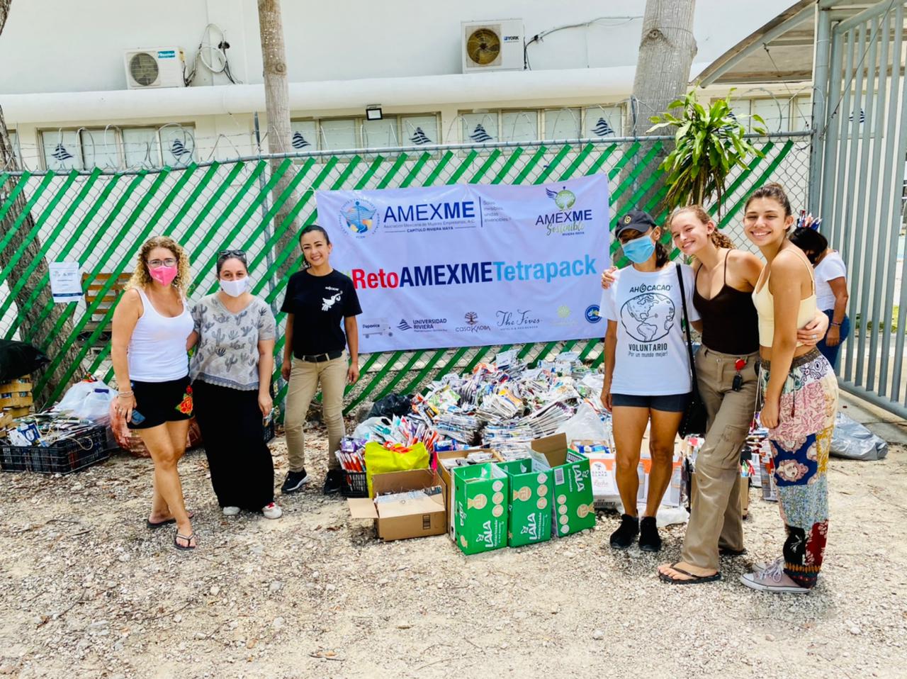 El Capítulo AMEXME Riviera Maya realizó este sábado en la Universidad Riviera el reto tetrapack, que consistió en acopiar e invitar a la gente y organizaciones a llevar sus envases vacíos y limpios de tetrapack, para transformarlos en pupitres que puedan ser usados por niñas y niños de escasos recursos en centros comunitarios de Playa del Carmen.