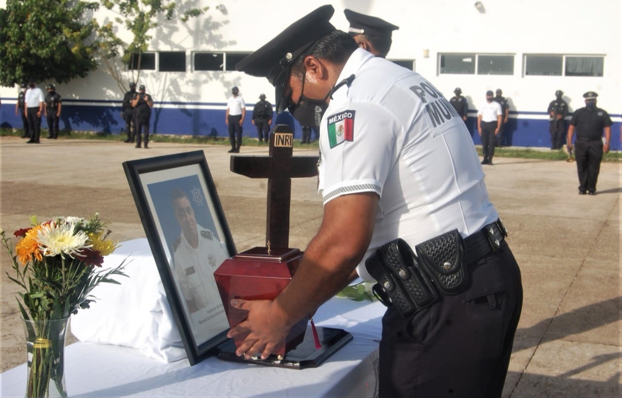 Por su parte el comandante Jorge Robles Aguilar, encargado del despacho de la Secretaría de Seguridad Pública y Tránsito Municipal de Solidaridad, entregó un reconocimiento a sus familiares y una placa en su memoria para recordarlo en la corporación por su valioso y siempre íntegro cumplimiento de su deber.