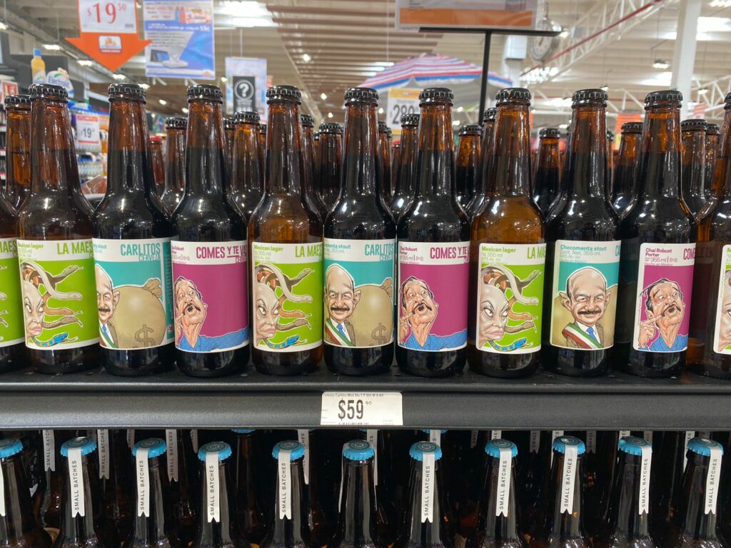 Playa del Carmen, Quintana Roo.-“Error de Diciembre” es la cervecería que tuvo la ocurrencia de colocar la imagen de estos tres políticos en sus envases.