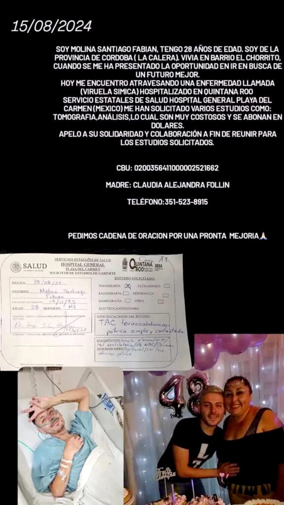 La mujer confió al diario argentino que “hay cosas que en el hospital de Playa del Carmen no se le pueden dar porque hay que hacerlo en lugares privados y son muy caros. Por eso, empecé una colecta para poder solventar esos gastos”.