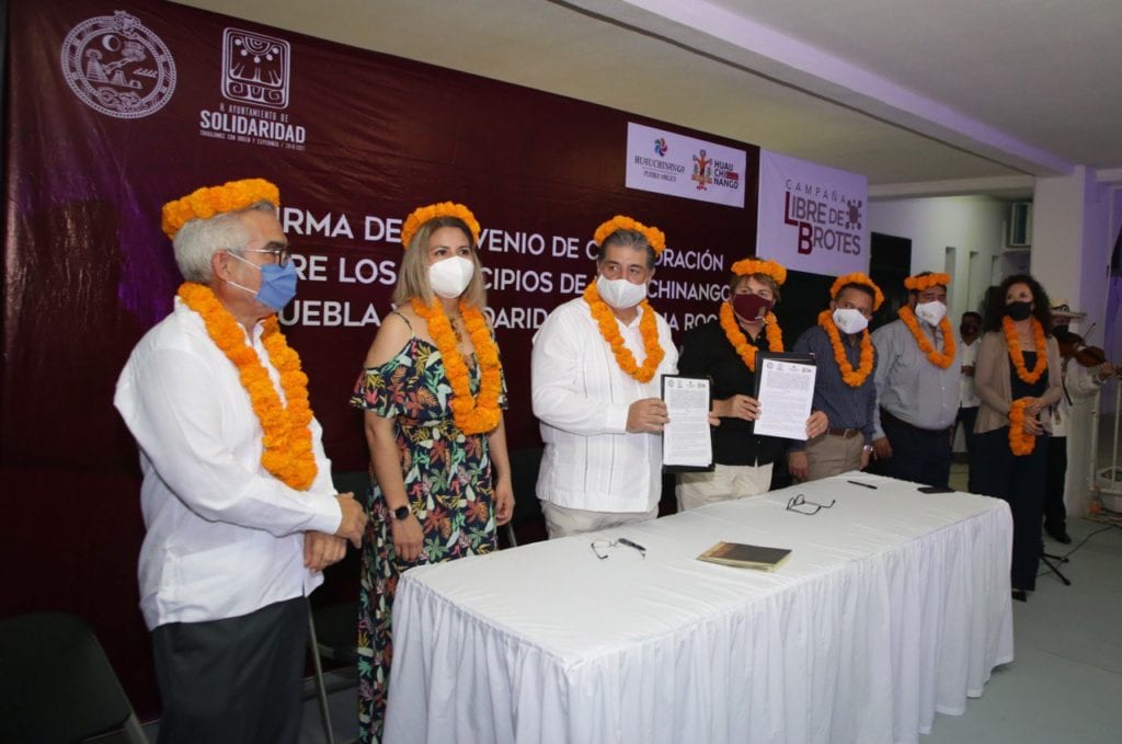Playa del Carmen, Solidaridad.-Con la finalidad de estrechar lazos y compartir programas de intercambio benéficos para ambos municipios, la presidenta municipal de Solidaridad, Laura Beristain Navarrete firmó el convenio de colaboración para celebrar el hermanamiento con el pueblo mágico de Huauchinango, Puebla, que dirige el alcalde Gustavo Vargas Cabrera.