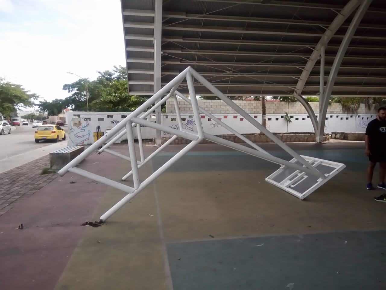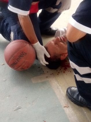 Se dice que el hombre jugaba basquetbol cuando la canasta con el tablero completo se desprendió del suelo y le cayó en la cabeza ocasionándole una fuerte contusión.