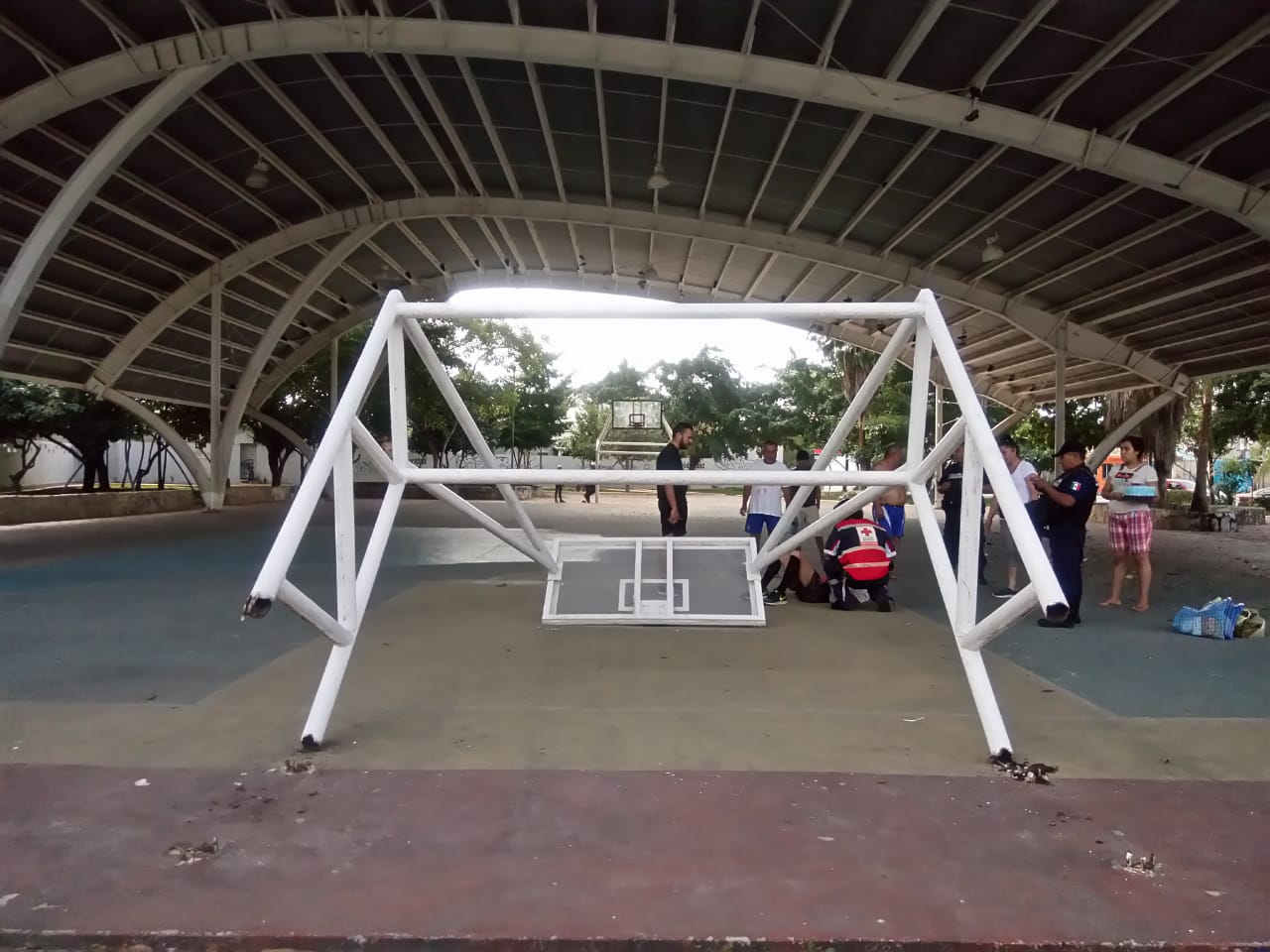 Playa del Carmen.- Esta mañana se registró un percance en un domo de Playa del Carmen mientras un hombre jugaba basquetbol junto a su hijo.