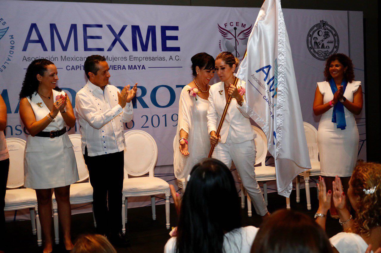 Lucero Cabrales García Conde, presidenta nacional de AMEXME, felicitó al gobernador por la creación de un protocolo para la atención del sargazo, el rescate de playas y el adecuado manejo financiero sin endeudarse.