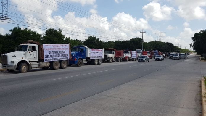 Playa del Carmen.- Desde hace una semana el gremio de volqueteros de Playa del Carmen inició con manifestaciones, pues están en contra de un nuevo sindicato que dicen son los preferidos por los constructores del lugar.