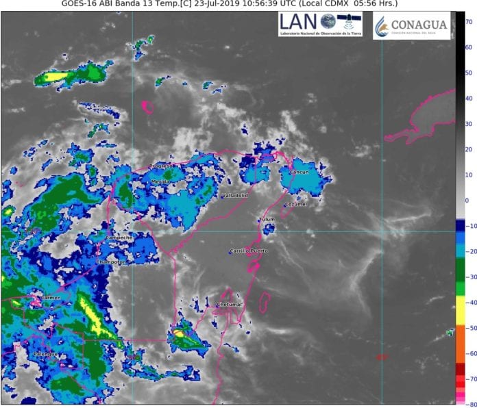 Playa del Carmen.- Los remanentes de la onda tropical 19 localizada al sur de Guatemala, interactúa con la entrada de aire marítimo tropical con variable contenido de humedad procedente del Mar Caribe hacia la Península provocan temperaturas muy calurosas, nubosidad con lluvias y con algunos chubascos acompañados de actividad eléctrica, sobre parte de Quintana Roo. Además, se monitorea una depresión en el Atlántico, ubicada a 985 kilómetros de Cancún, misma que por ahora no representa riesgo.
