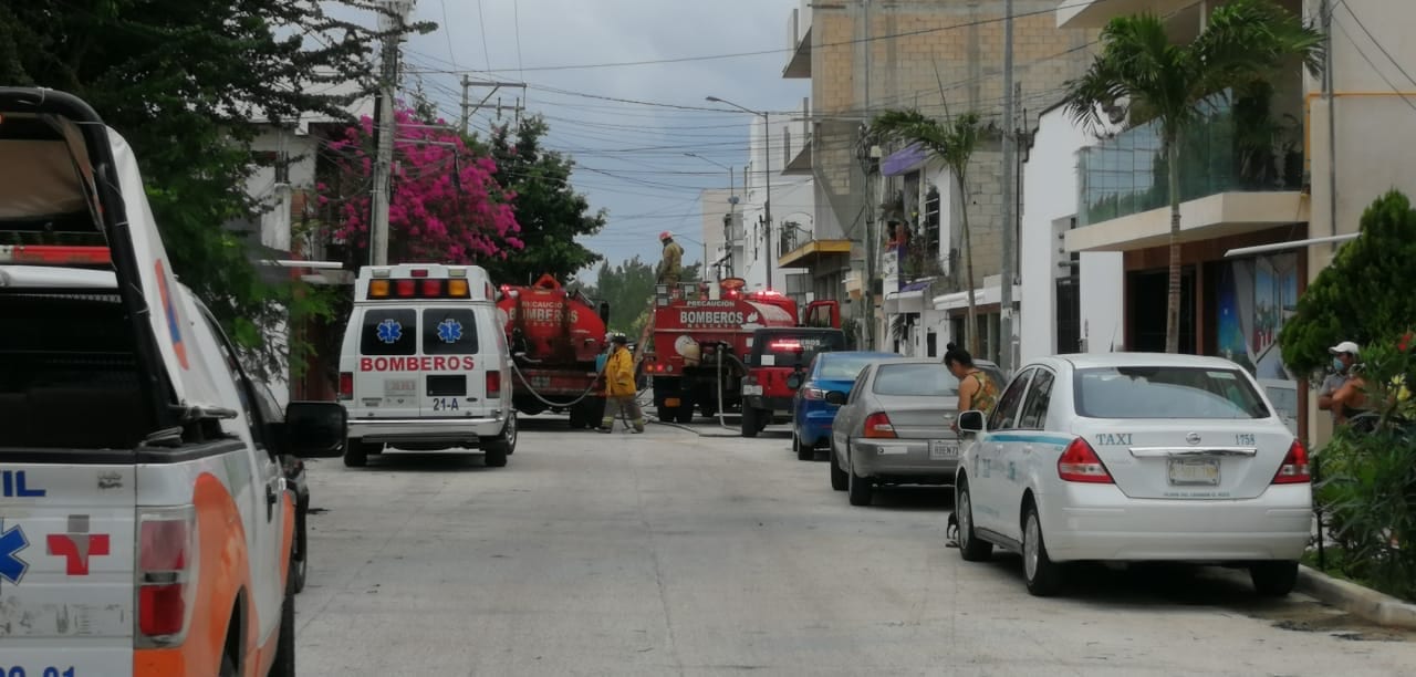 La Policía Municipal de Solidaridad apoyó en todo momento a los bomberos al igual que una ambulancia.