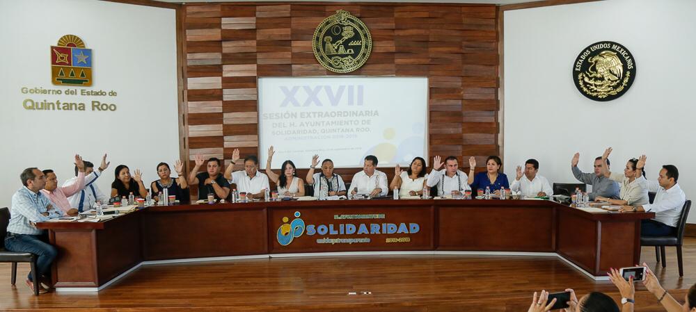 Durante la XXVII Sesión Extraordinaria de Cabildo, el Cuerpo Colegiado aprobó las modificaciones al Presupuesto de Egresos y el correspondiente ejercicio del gasto por parte de la Tesorería Municipal derivado de la gestión financiera del Ayuntamiento de Solidaridad del 1 de enero al 30 de agosto de 2018.