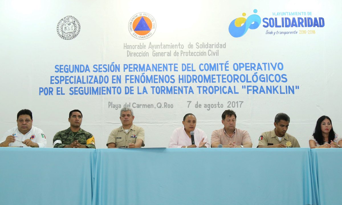 La Tormenta Tropical “Franklin” del Mar Caribe; se localizó el día de hoy a las 05:00., en las coordenadas 19.3 grados latitud Norte y 88.5 grados longitud oeste.
