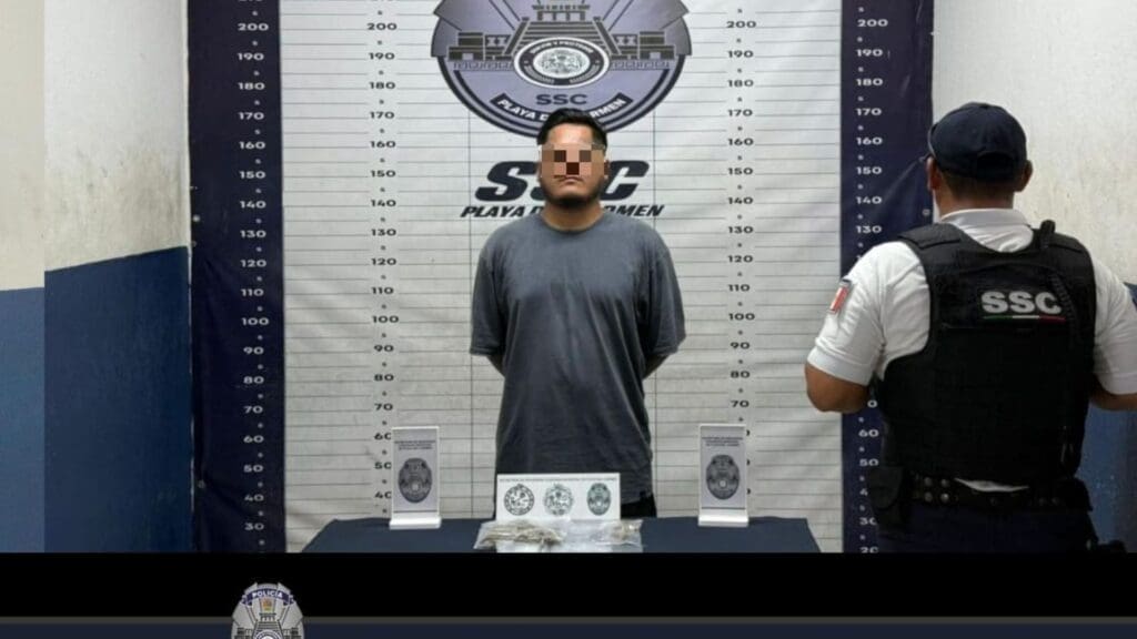 Sujeto es captado infraganti vendiendo marihuana y es detenido en Playa del Carmen