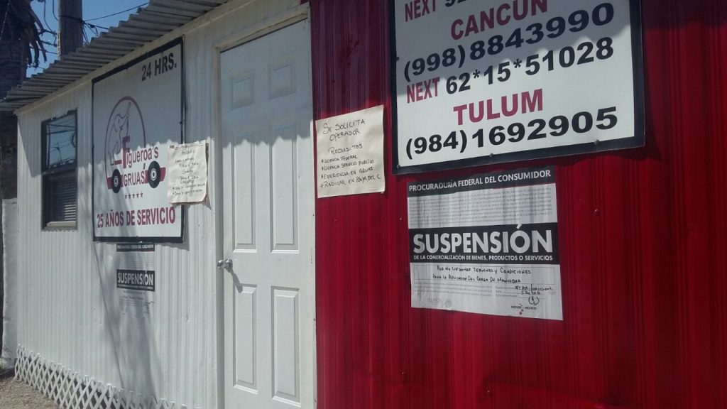 Playa del Carmen.- Ocho empresas de grúas fueron suspendidas, parcial o totalmente en Playa del Carmen, por la Procuraduría Federal del Consumidor (Profeco).