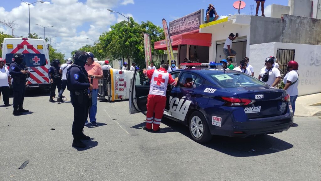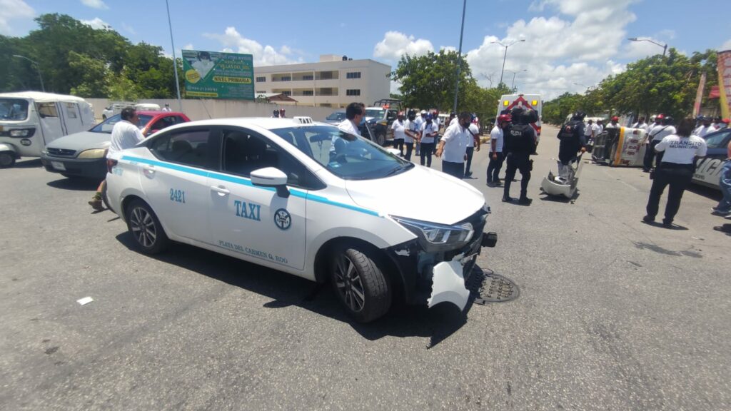Playa del Carmen.-Un taxista del sindicato “Lázaro Cárdenas del Río” ocasionó un accidente de tránsito con saldo de un menor de edad lesionado, cuando circulaba sobre la avenida Azulejos.
