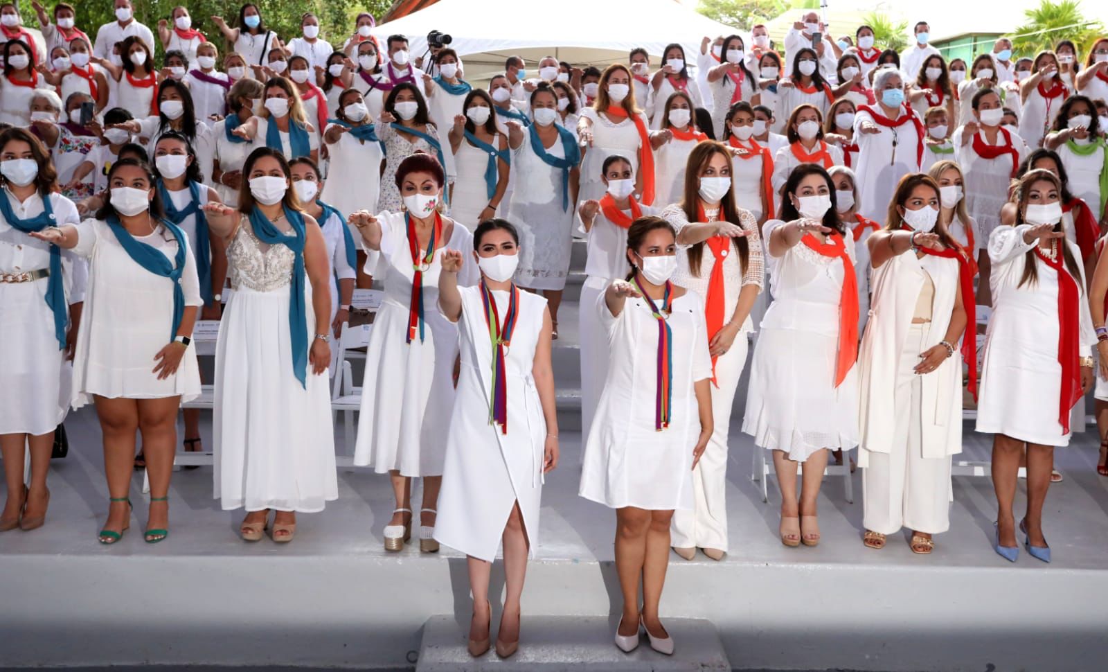 Estuvieron presentes en este importante acto las presidentas honorarias de los municipios Felipe Carrillo Puerto, María Del Carmen Solís Sánchez; Cozumel, Susana del Mar Coral Villanueva; José María Morelos, Marina Balam Cauich; Lázaro Cárdenas, Elsy Rubí Cruz Chac; Puerto Morelos, Maura Cordero Silva; Isla Mujeres, Minelly de los Ángeles Ricalde Magaña; Tulum, Ileana Canul Dzib y el presidente honorario de Othón P. Blanco, David Hernández Solís.