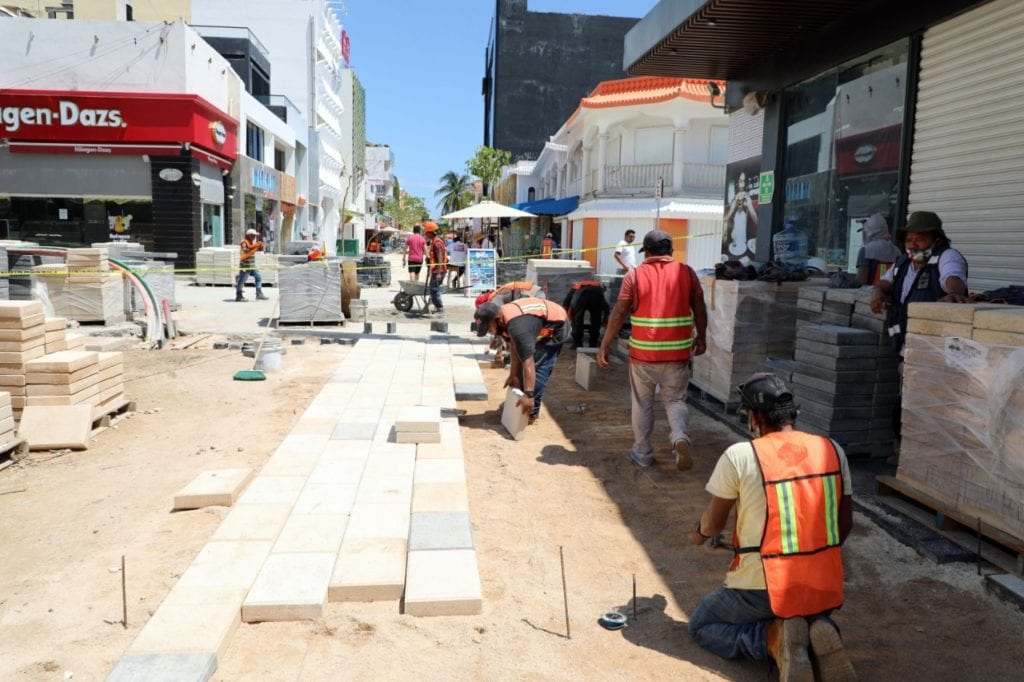 Playa del Carmen.- En tiempo y forma continúa la modernización de la Quinta Avenida al incrementarse el suministro de baldosas y adocretos lo que permite avanzar con esta obra trascendental que beneficiará a decenas de comerciantes con la renovación de la imagen del paseo turístico más famoso de México.