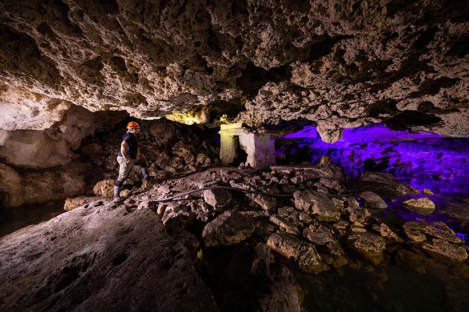En videos se aprecia cómo exploran parte de la caverna, la cual se encuentra repleta de murciélagos y tras iluminar con sus lámparas, se puede observar un altar maya.