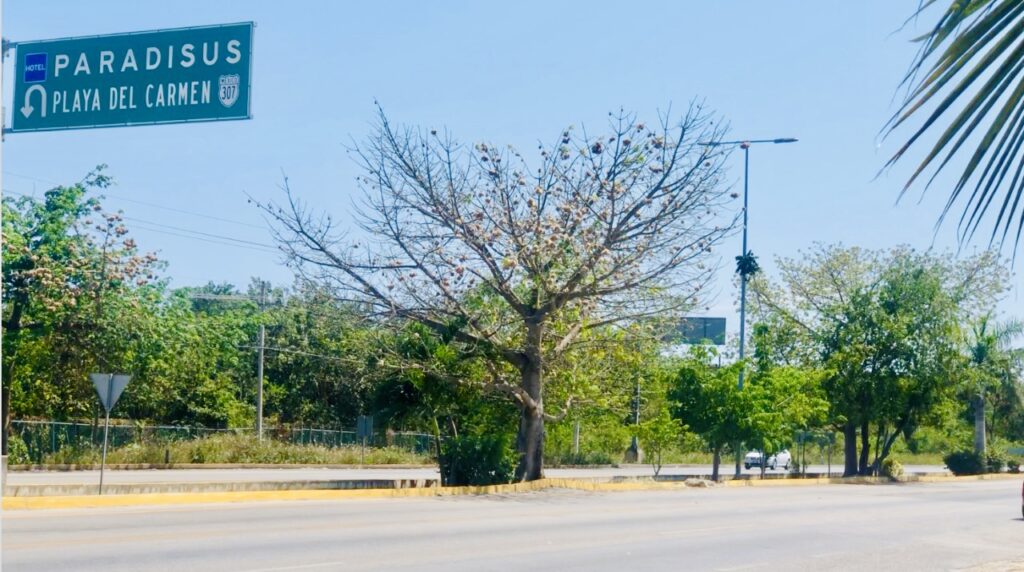 Una ceiba enorme vivía en el camellón de la carretera federal Cancún-Playa del Carmen.