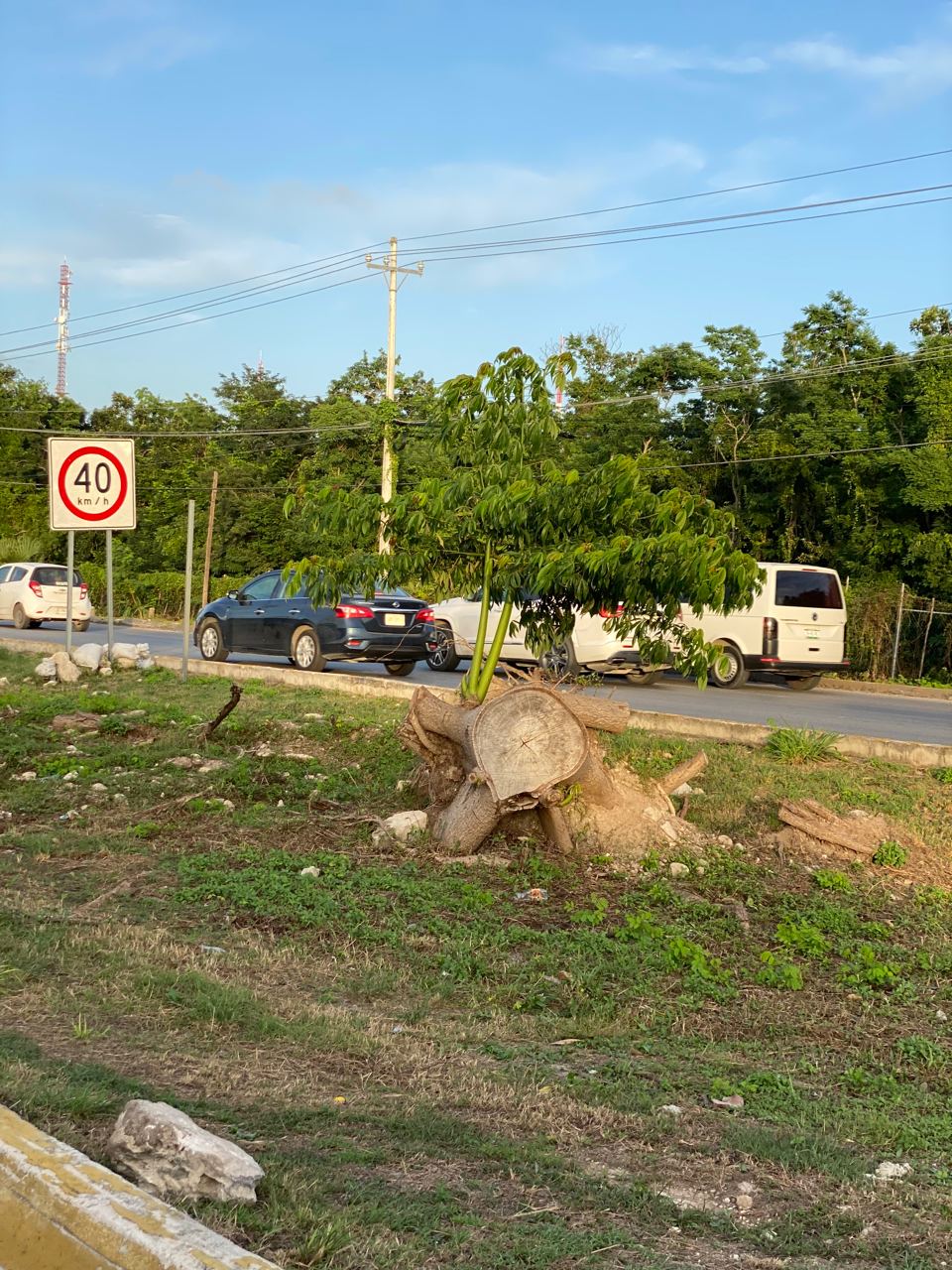 Este bello ejemplar, localizado en la carretera entre el colegio Weston y la avenida 28 de julio, fue talado durante la construcción del tramo 5 del Tren Maya en esta ciudad.