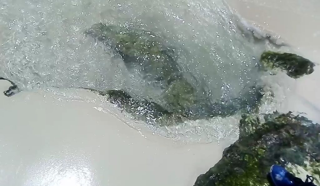 Este fin de semana un hermoso espectáculo de la naturaleza atrajo a bañistas locales y foráneos, cuando en las playas del centro de la ciudad se formaron tres ojos de agua.