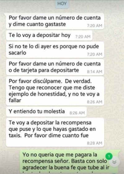 Así que lo inesperado pasó, el susodicho se comunicó con Aida para remendar su error y agradecerle su buena acción.