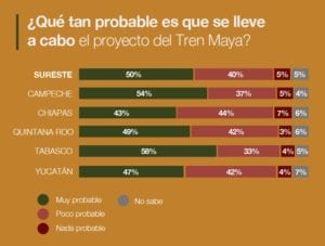 Sin excepción, en cada estado que tiene que ver con la propuesta la gente entrevistada considera que el Tren Maya será beneficioso.
