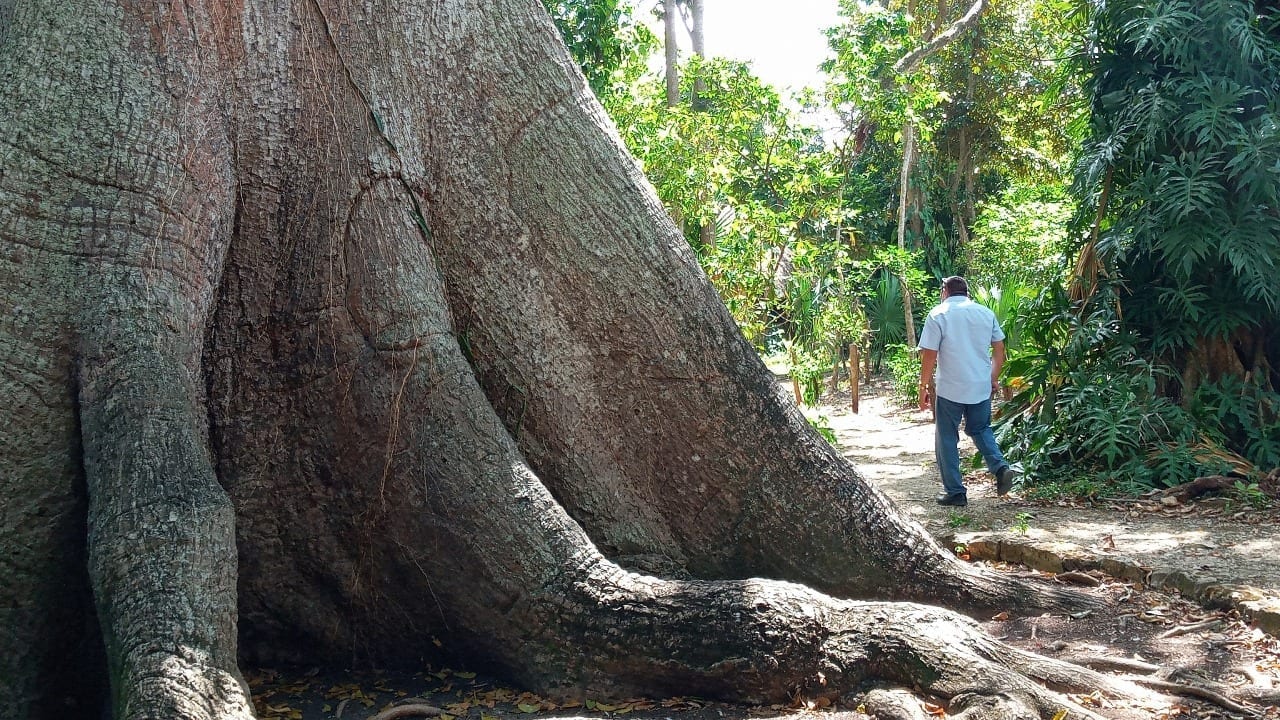 Ramírez Domínguez, explicó que se trata de una enorme ceiba de más de 800 años que está bajo la protección de una familia, un árbol casi milenario y excéntrico.