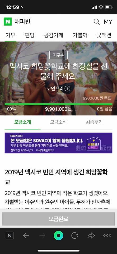 Según los últimos arreglos que busca realizar en su escuela este activista con el nuevo recurso recudado, es un baño, para lo caul recaudió 9,900,000 Wones equivalentes a 174,735.87 pesos.