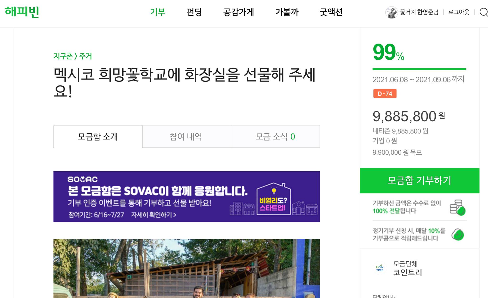 Según los últimos arreglos que busca realizar en su escuela este activista con el nuevo recurso recudado, es un baño, para lo caul recaudió 9,900,000 Wones equivalentes a 174,735.87 pesos.