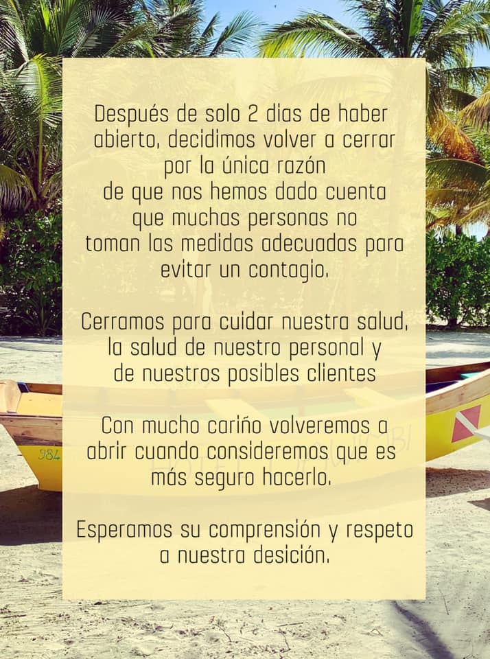 No cabe duda que la irresponsabilidad de mucha gente sigue causando estragos no solo en la salud sino económicos. En este caso el hotel no puede seguir operando pues su administración vio que había una gran cantidad de persona en la isla de Holbox que no estñan respetando las medidas como usar cubrebocas y guardar sana distancia.
