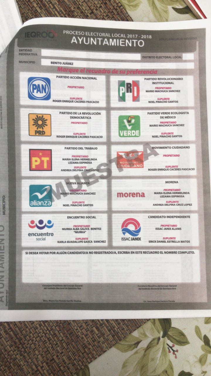 Cabe destacar que en la sesión del Ieqroo en el que se abordó la impresión de los materiales electorales, el representante del Partido de la Revolución Democrática (PRD) solicitó justamente dejar para el final la impresión de las boletas de Benito Juárez, lo que fue rechazado por los consejeros, pues argumentaban que no se les podía otorgar un trato preferencial.