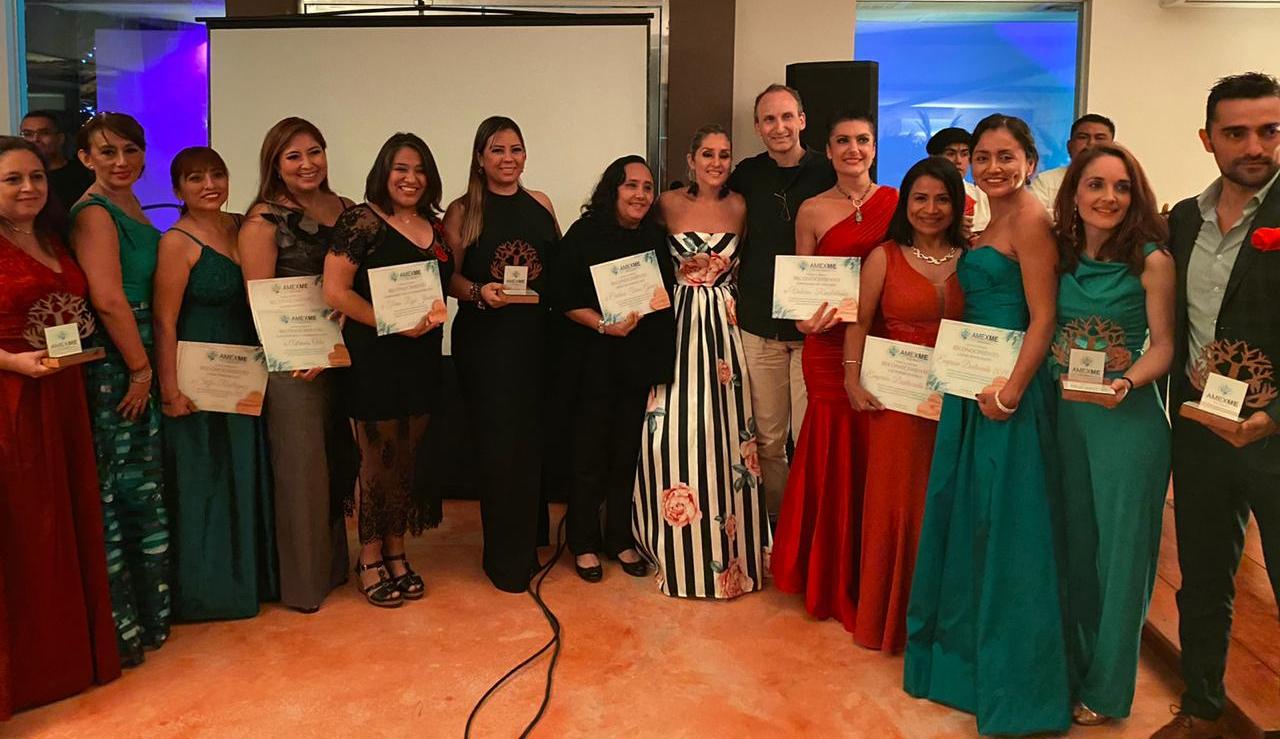 Playa del Carmen.- Con el galardón de empresaria del año entregado a Valeria Rindertsma, y el de trayectoria empresarial cedido a Rohan Barnett, el capítulo Riviera Maya de la Asociación Mexicana de Mujeres Empresarias (Amexme) premió a lo más destacado del año de este ámbito, en una gala especial realizada en un restaurante de esta ciudad.