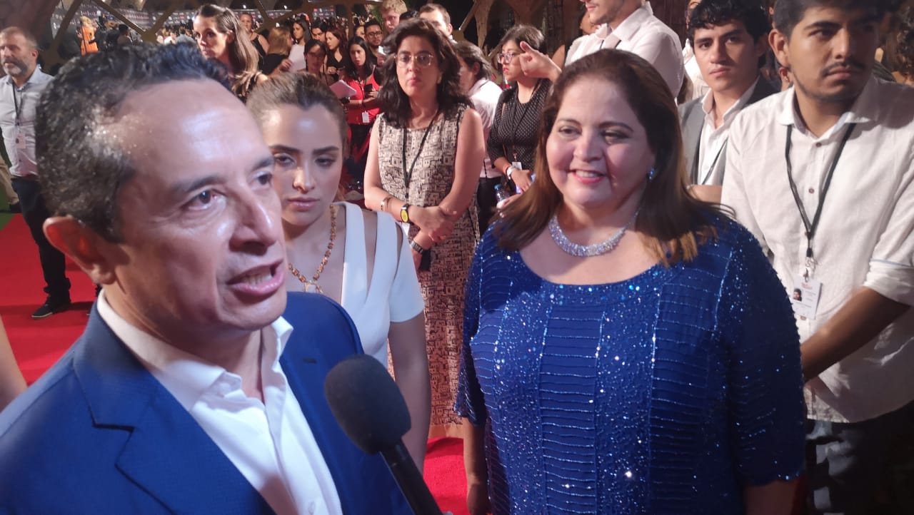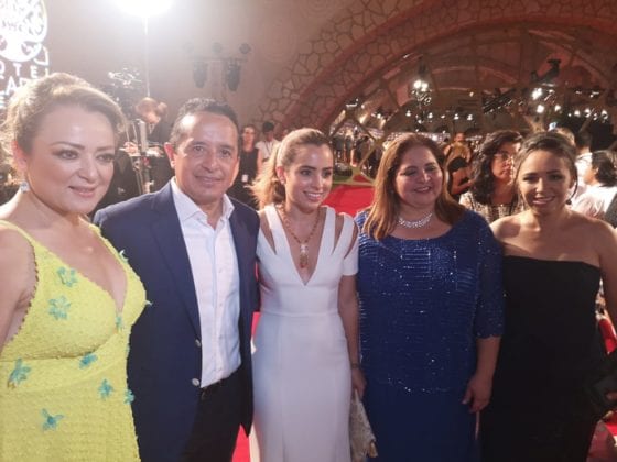 Carlos Joaquín acudió acompañado por su esposa, la presidenta del DIF Quintana Roo, Gaby Rejón de Joaquín, y su hija Ana Gabriela Joaquín Rejón, a la entrega de los Premios Platino.