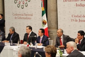 Ciudad de México.-La tarde de ayer quedó formalmente instalada la Comisión para el Desarrollo Social y Pueblos Indígenas de la Conferencia Nacional de Gobernadores (CONAGO), la cual es presidida por Carlos Joaquín, gobernador de Quintana Roo, fungiendo como Vicecoordinadores Héctor Antonio Astudillo Flores, gobernador de Guerrero, y Miguel Márquez Márquez, gobernador de Guanajuato y asistiendo como testigo, el Secretario de Desarrollo Social Federal, Eviel Pérez Magaña.