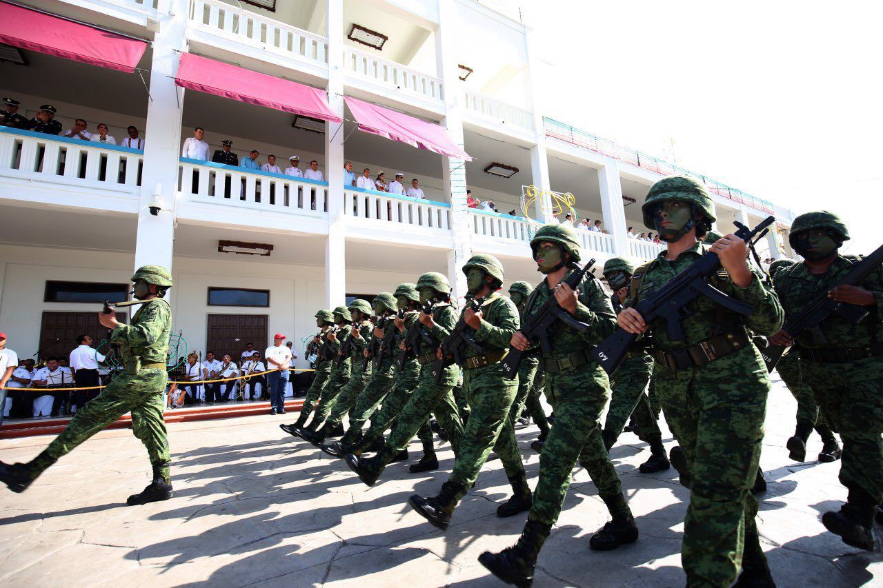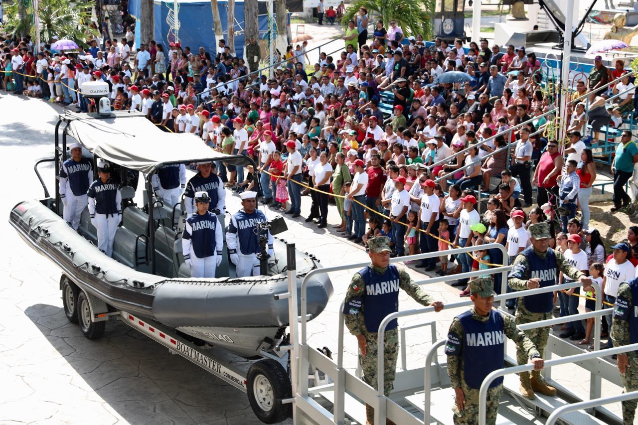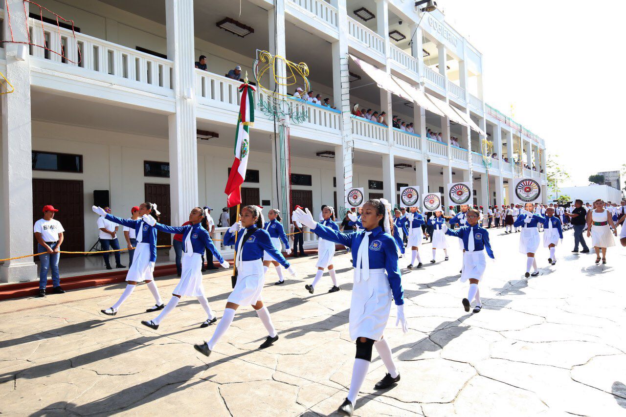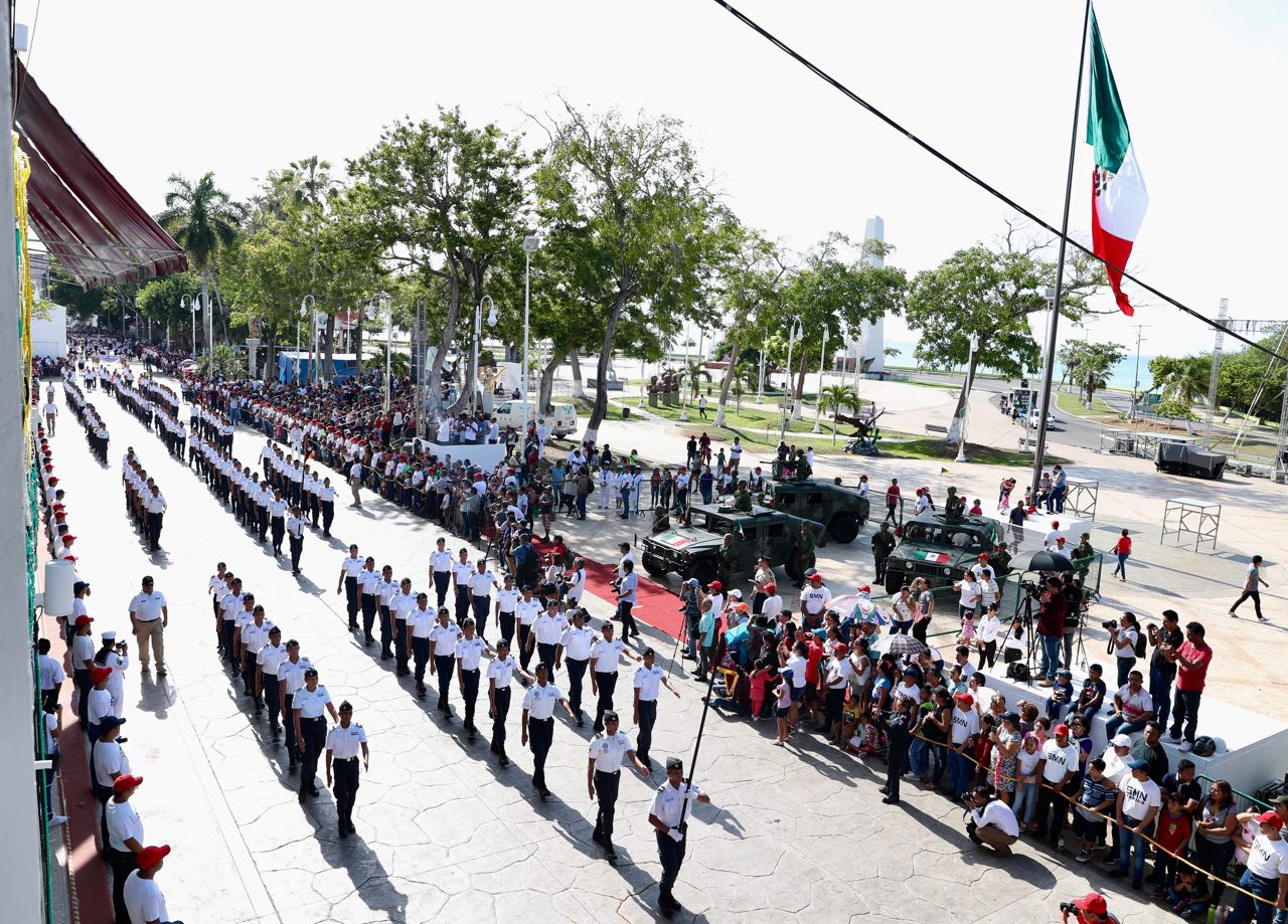 El desfile recorrió la avenida de Los Héroes y pasó frente al Palacio de Gobierno, donde los contingentes fueron saludados por el gobernador Carlos Joaquín, acompañado de su hijo Miguel Joaquín, por representantes de las Fuerzas Armadas y los Poderes Legislativo y Judicial, funcionarios del gabinete e invitados especiales.