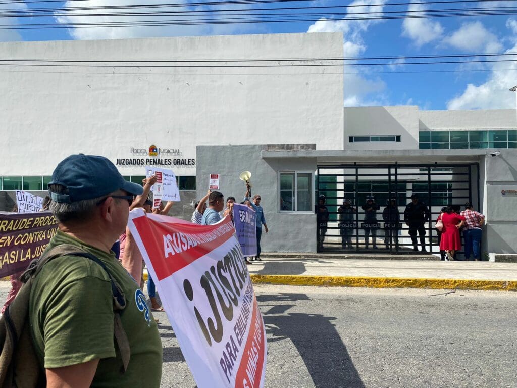 Los familiares de Emiliano Ramos Hernández protestaron afuera de los juzgados de Cancún a 56 días de la detención del exdiputado. Insisten que los delitos de los que se le acusan son fabricados y que está siendo víctima de una persecución política.