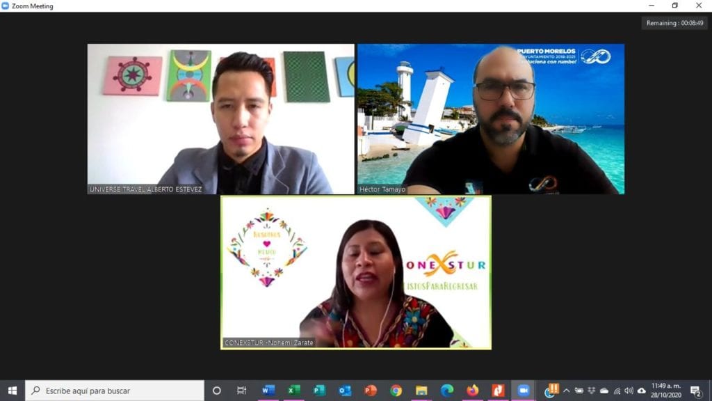 Puerto Morelos, Quintana Roo, 2 de noviembre de 2020.- Puerto Morelos tuvo una exitosa participación en la octava edición de la feria Adventure Travel Network (ATMEX, Loreto 2020), que reunió a profesionales del turismo de aventura de México, Chile, Argentina y Colombia, y que se llevó a cabo de manera 100 por ciento virtual a causa de la pandemia de Covid-19, informó la presidenta municipal Laura Fernández Pïña.