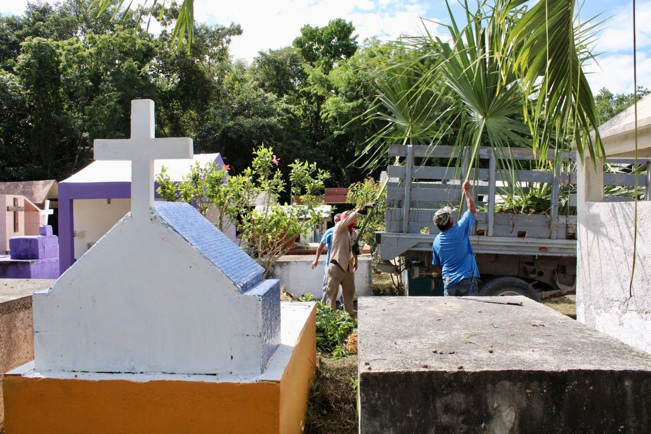 Puerto Morelos.- Con motivo de la conmemoración del Día de Muertos, la Dirección general de Servicios Públicos de Puerto Morelos trabaja en la limpieza general y la iluminación de los panteones de la cabecera municipal y la comunidad de Leona Vicario, informó su titular, Leonel Salazar Trejo.