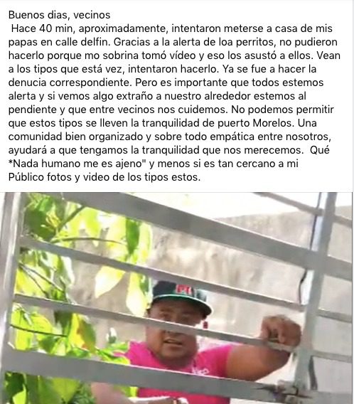 Al darse cuenta que habían sido sorprendidos, huyeron. Aunque los agraviados hicieron la denuncia correspondiente, exhortaron a sus vecinos de Puerto Morelos a tener precaución y no descartan que los posibles delincuentes sean de otra ciudad como Playa del Carmen o Cancún.