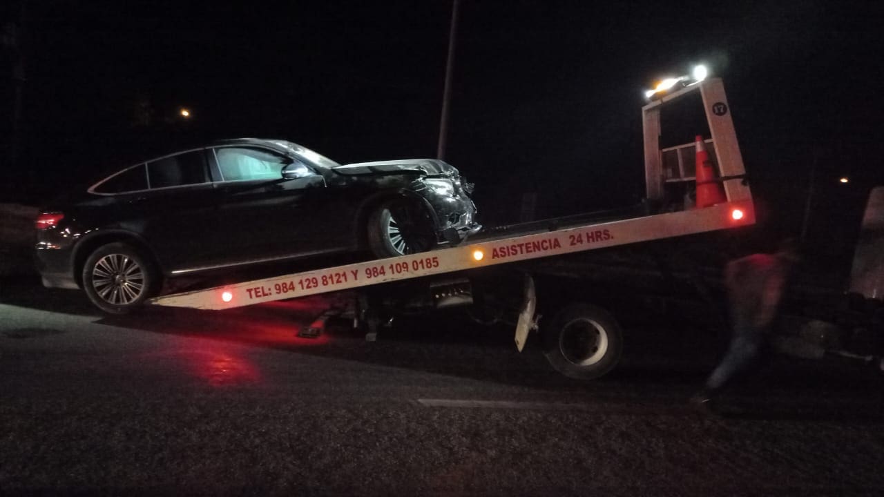 Las unidades involucradas fueron una camioneta color negro, con placas RVM-049-A., tipo Mercedes Benz, y un taxi del Sindicato “César Martínez Rosado” de Puerto Morelos.