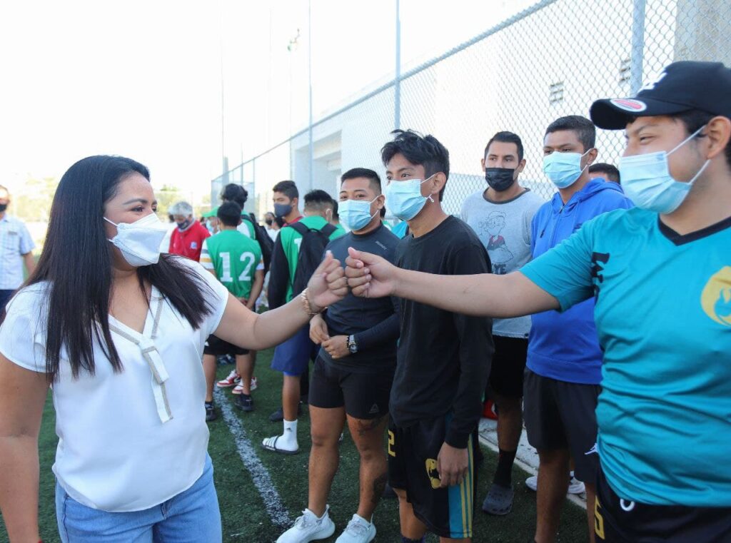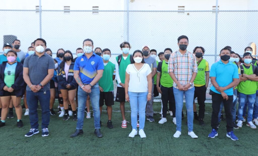 Puerto Morelos, Quintana Roo.- La alcaldesa Blanca Merari Tziu Muñoz inauguró el Encuentro Nacional Deportivo Indígena 2021, en su fase estatal, para las disciplinas de fútbol 7 y voleibol, en las ramas varonil y femenil.