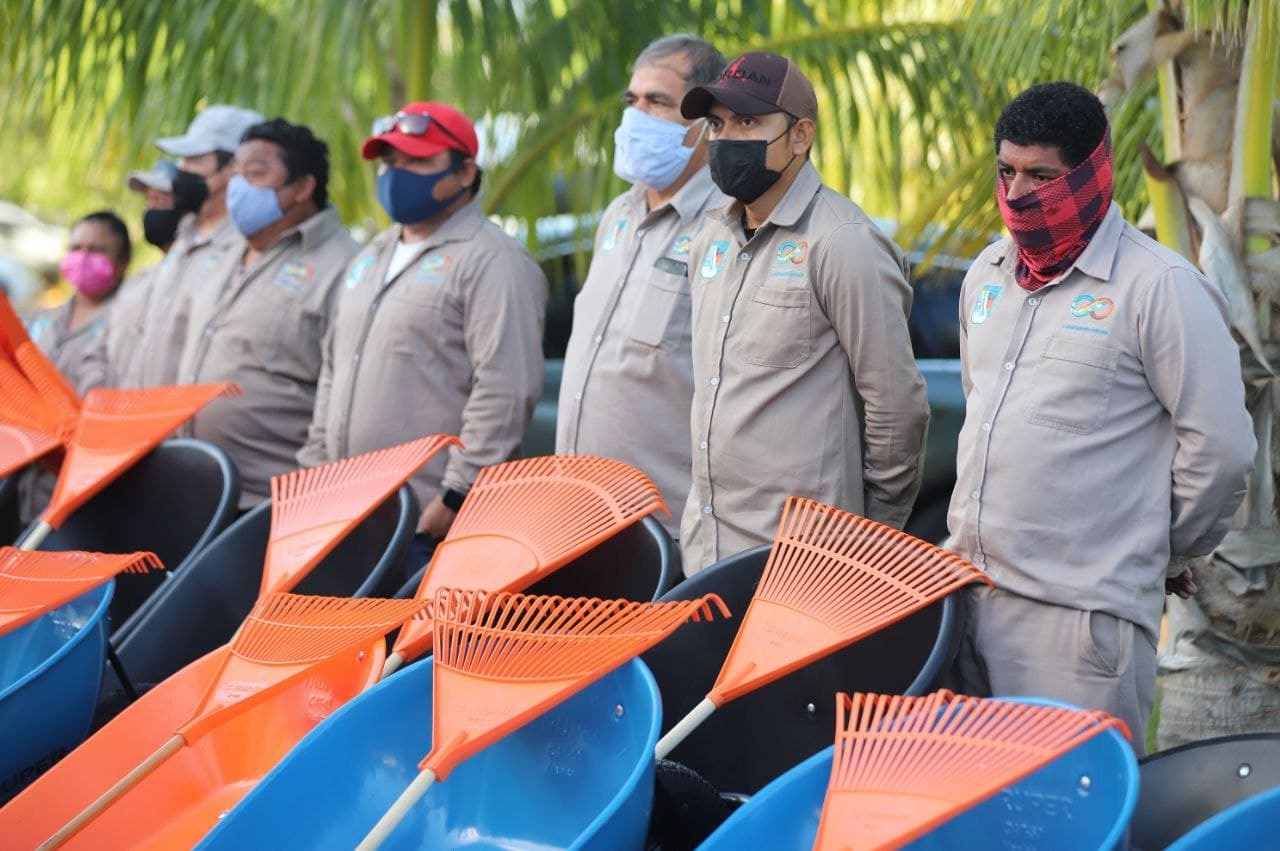 Acompañada por el titular de la dependencia, Leonel Salazar Trejo, y el director general del hotel El Cid, Héctor López Trucios, Blanca Merari Tziu destacó que estas herramientas que hoy se entregan, se utilizarán en todos los frentes de trabajo del municipio, como son las playas, unidades deportivas, parques y camellones.
